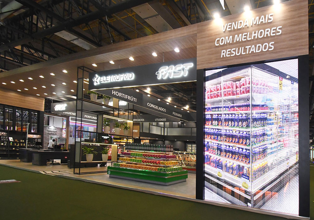 Empresa brasileira líder em expositores refrigerados e câmaras frigoríficas, a Eletrofrio marca presença anualmente na feira APAS como um dos principais players do setor de supermercados. A PROARTS renova a cada ano a parceria no desenvolvimento dos projetos e estandes de mezanino de grande porte, nessa que é a principal feira do varejo na America Latina. Uma montagem casada – a gente deixa tudo pronto bem antes do final da montagem para que o cliente ajeite no estande a exposição dos seus produtos, que pesam toneladas. Satisfação enorme atender a Eletrofrio. Veja alguns resultados.